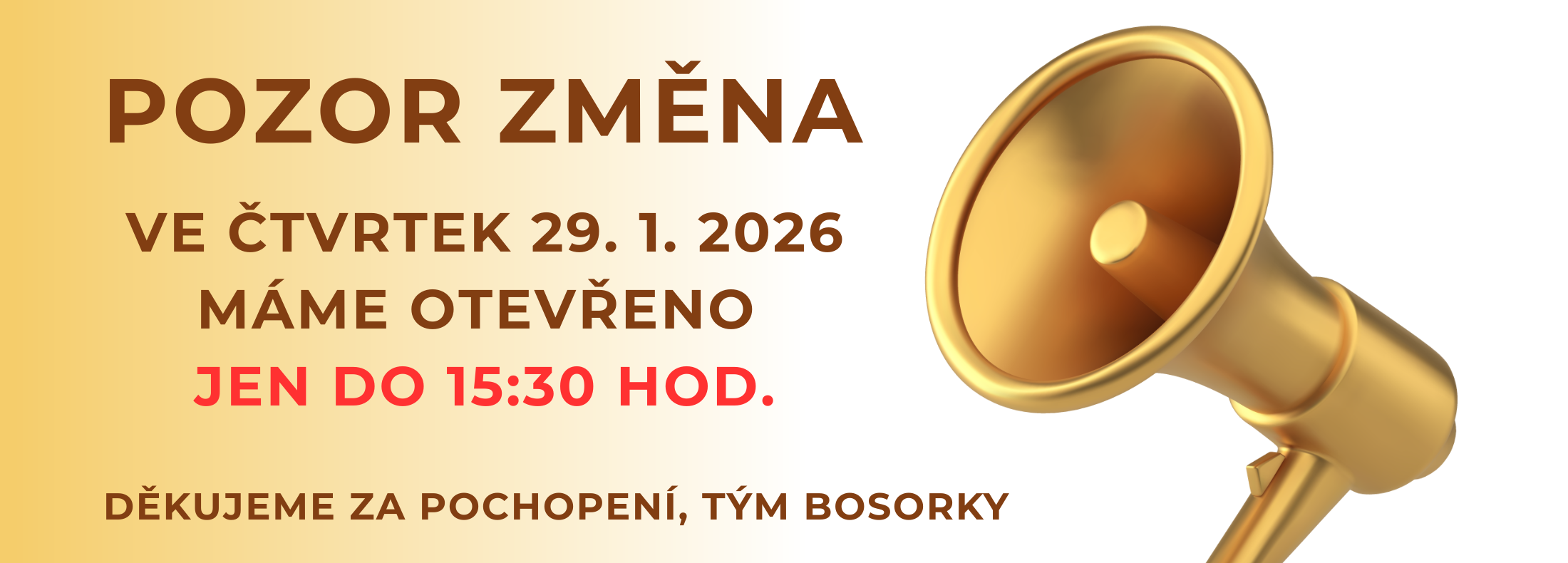 PROVOZNÍ DOBA: PONDĚLÍ - PÁTEK 10-13, 14-17 HOD. Dne 29. 1. 2026 otevřeno jen do 15:30 hodin!!!!