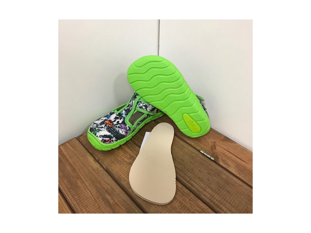 Balení obsahuje tzv. regulační stélku, která po vložení může pomoci s regulací prostoru v oblasti nártu. k regulaci prostoru v oblasti nártu. Bačkory FARE BARE mají také vyjímatelnou stélku