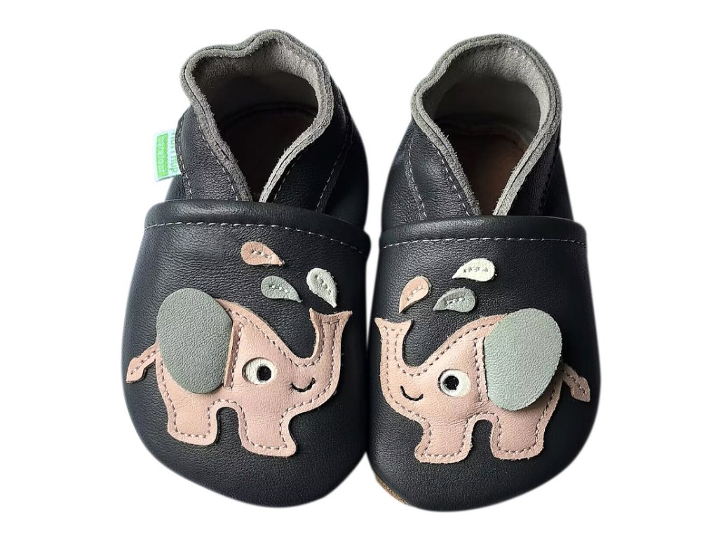 BAREFOOT KOŽENÉ CAPÁČKY - SLONÍK šedo - růžový, Hopi Hop