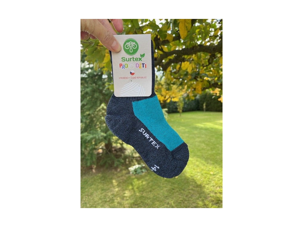Merino ponožky 70% ovčí vlny (volný lem pro děti) - tyrkysová, Surtex