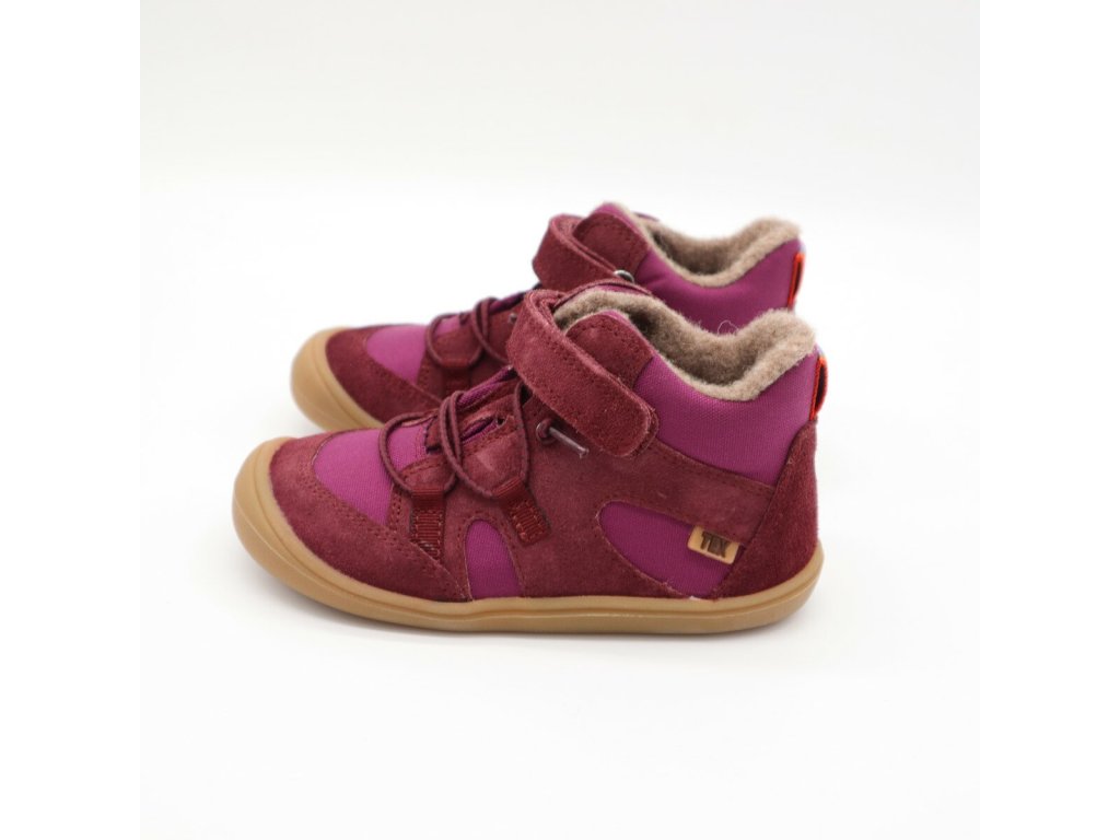 Zateplená barefoot kotníková obuv - BEAU WOOL BORDO, KOEL4kids