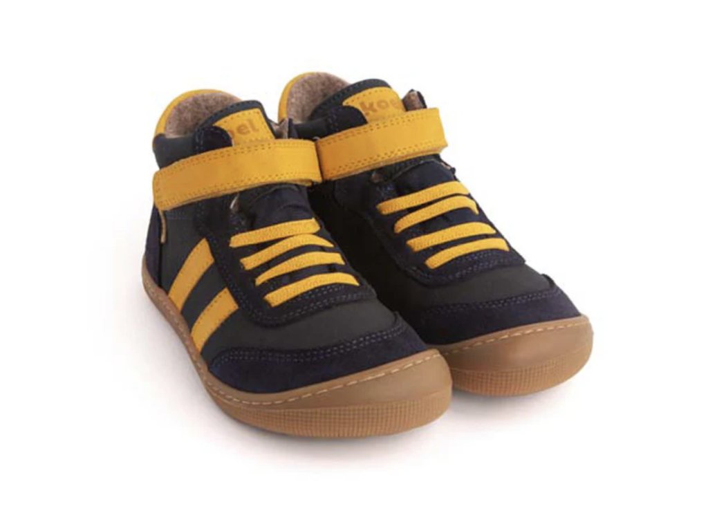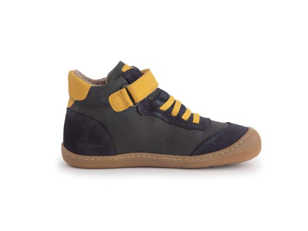 Zateplená kožená barefoot kotníková obuv značky KOEL4KIDS. Model má membránu.