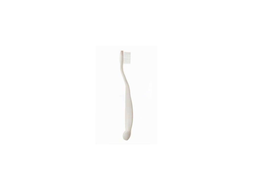 Dětský kartáček na světě s rukojetí vyrobenou ze 100% z geneticky nemodifikovaného, rozložitelného kukuřičného škrobu. Je navržený tak, aby se dětem skvěle držel.