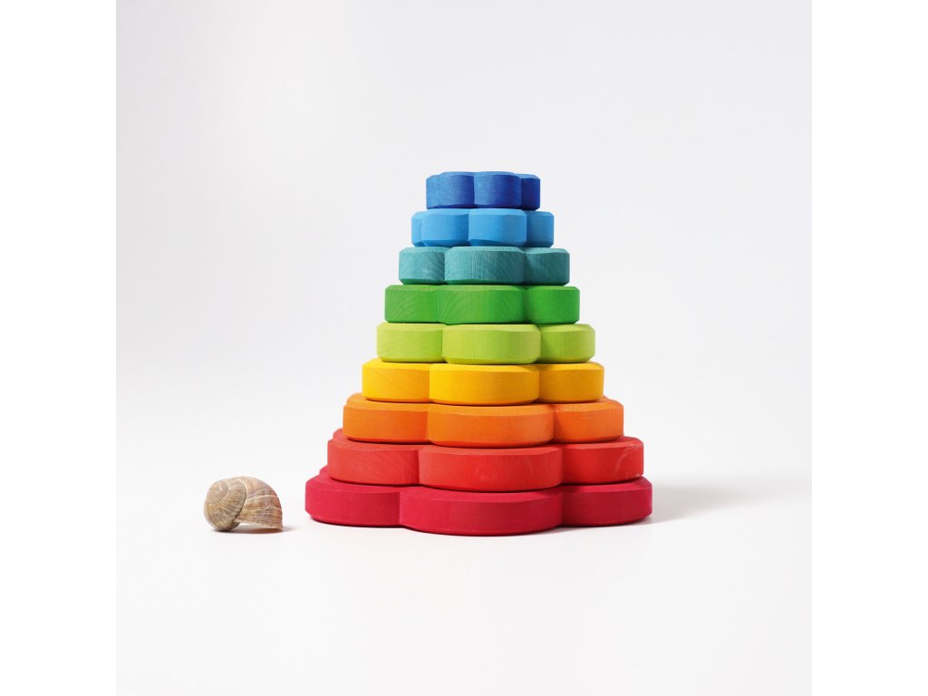 Skládací pyramida ve tvaru květiny je především úžasně barevná a děti ji milují.