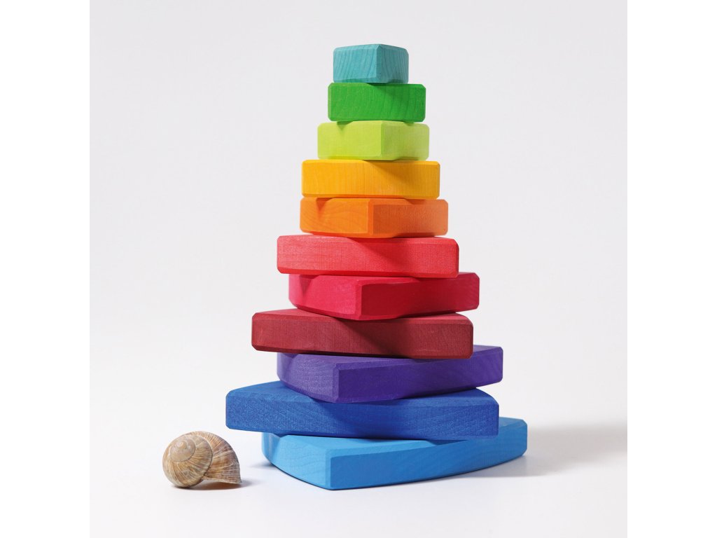 Hledáte hračku pro děti okolo jednoho roku? Nasouvací věže a různé pyramidy jsou tou správnou a vhodnou hračkou pro tento věk. Malé děti objevují nové, skládají, třídí, nasouvají, přeskládávají, řadí jednotlivé dílky – to je jejich nejoblíbenější činnost. A když hračka nabízí dítěti široké možnosti využití, bude je doprovázet dlouhou dobu. Hračky Grimm's jsou úžasně barevné, děti se brzy naučí barvičky pojmenovat. Dále se učí rozlišovat věci malé a velké, světlé a tmavé. Jednotlivé dílky těchto hraček jsou dostatečně silné, aby je děti mohly využívat i jako stavební kostky. Nastrkovací čili nasouvací věže rozvíjí jemnou motoriku dětí a senzomotoriku. Dalšími vhodnými hračkami v tomto věku jsou nasouvací krabičky, ale i skládačky duha a 4 živly a tahací zvířátka. Hračky Grimm's jsou vyrobeny z evropských dřevin, jsou ošetřeny ekologickými barvami a olejem a voskem, takže příjemně voní po přírodě. Dřevěné hračky Grimm's navíc vynikají svoji neobyčejně krásnou, ladivou a zářivou barevností.