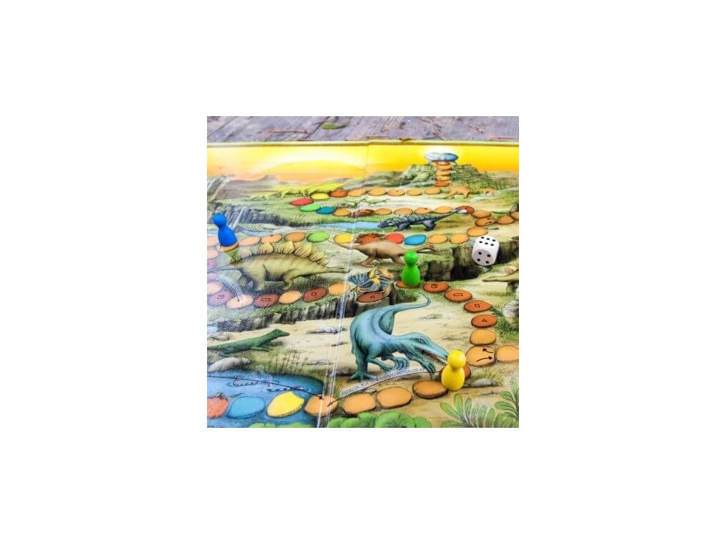 Putování s dinosaury je taková oddechovka, zkratky, vracečky… Sbíráš vejce s dinosauřích hnízd při cestě ke stroji času. Skok přes propast je největší záludností, záleží na správném odrazu… Při tom si procvič názvy základních geometrických tvarů. Dej bacha, ať nešlápneš do dinosauřích bobků! Do hry jsou vpasovaná barevná políčka vztahující k majitelům dané barevné figurky. U těch se dají nastavit vaše vlastní pravidla, která do hry můžou vnést souboje mezi hráči…záleží co vaše děti unesou:)