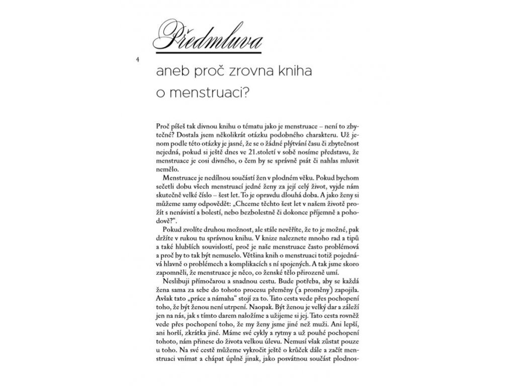 „Hlavní popud sepsat takovou knihu byl ten, že skoro veškerá literatura na téma menstruace byla o tom, co to menstruace je, jaké problémy z ní mohou plynout a jak to mohu řešit (nejčastěji hormonální antikoncepcí). A já jsem zkrátka chtěla sepsat knihu, která by byla napsaná ženou pro ženy, nikoli z pohledu lékařského, ale toho lidského.“