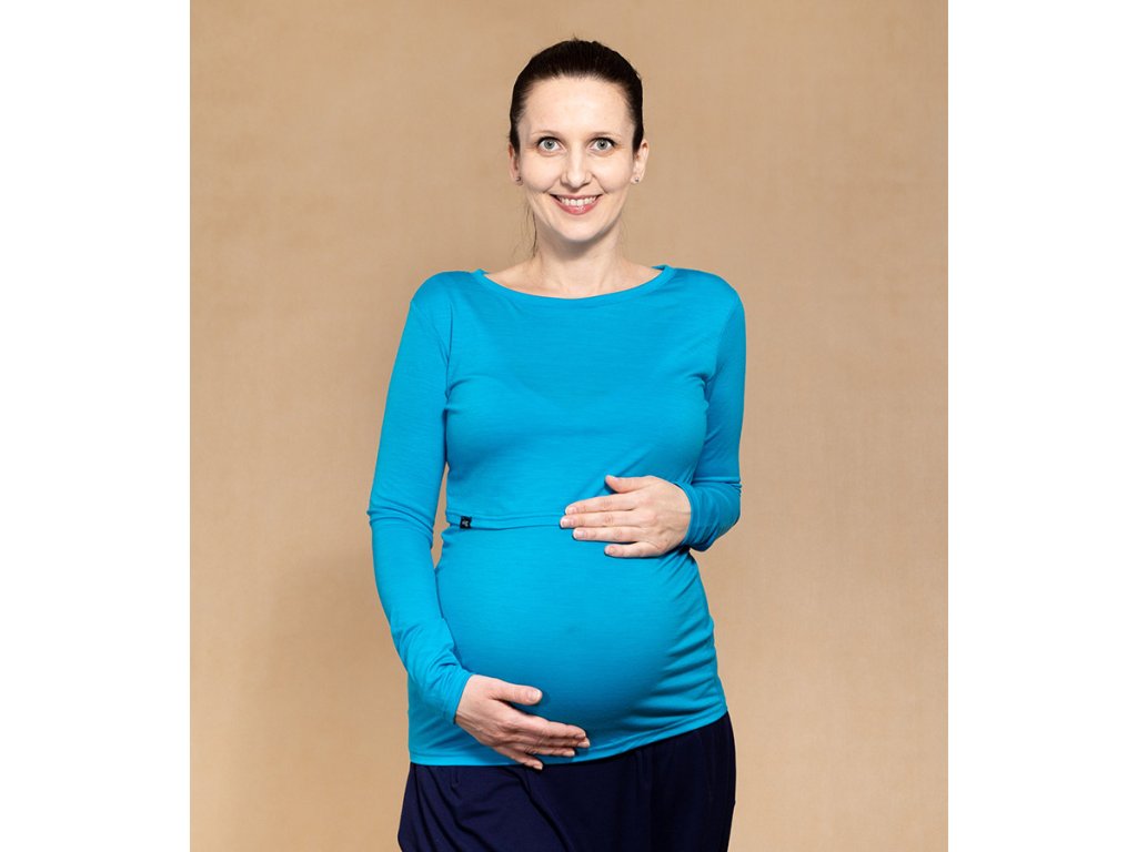 Merino kojící tričko - tyrkys (dlouhý rukáv), Adelay