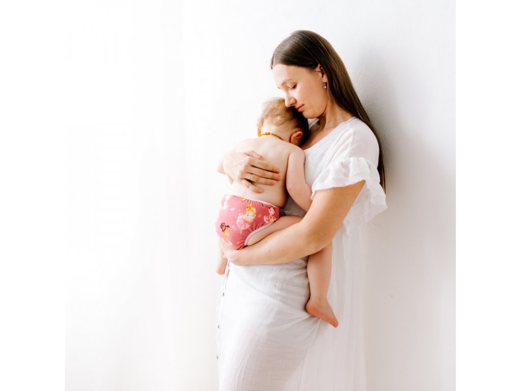 - Používá se s nepromokavými svrchními kalhotkami, kterými vytvoříte druhou ochranu proti protečení kolem nožiček miminka.