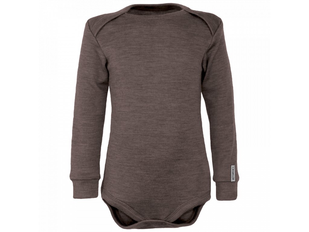 Merino body dlouhý rukáv - Hnědý melír, Crawler