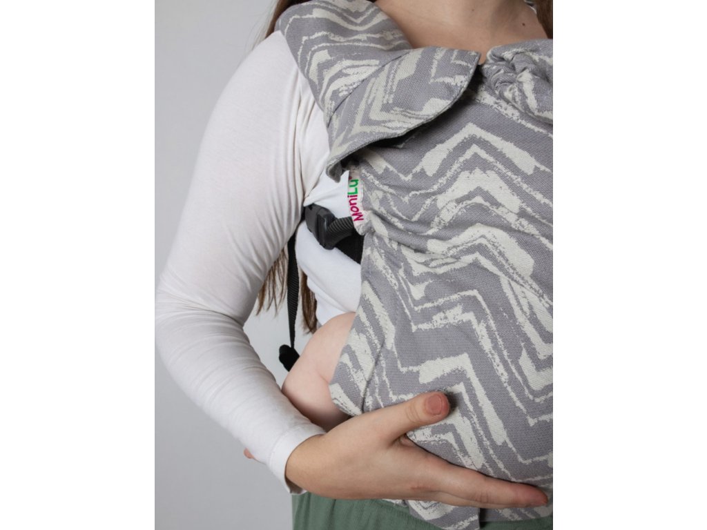 Rostoucí nosítko MoniLa UNI je vhodné pro děti od 2 měsíců (cca 55 cm) a 5 kg do cca 2,5 až 3 let/cca 95 cm. Nosítko má celoutahovací ramenní popruhy a možnost křížení.