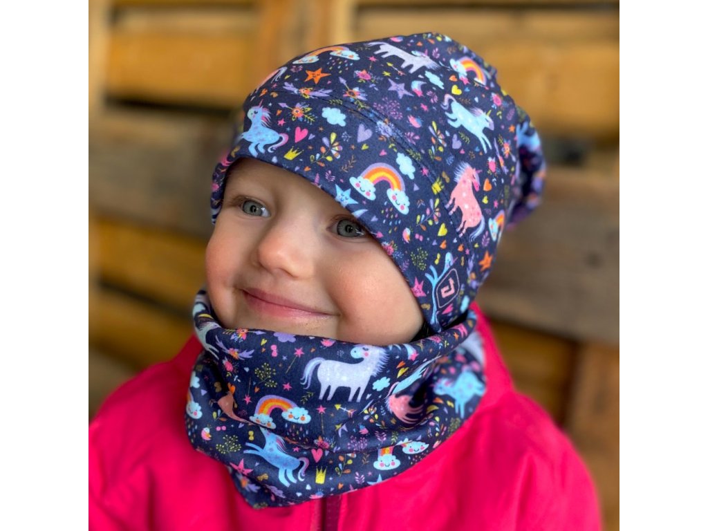 Set fleecové čepice a nákrčníku Yetti - fialová, jednorožci, Dráče
