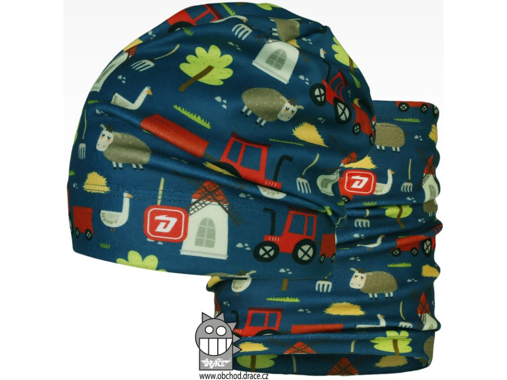 Set fleecové čepice a nákrčníku Yetti - petrol, traktor, Dráče