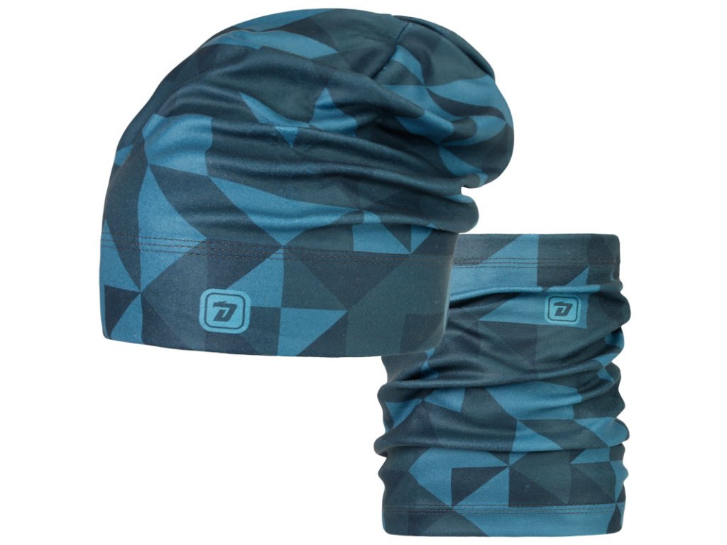 Set fleecové čepice a nákrčníku Yetti - petrol - trojůhelníky, Dráče