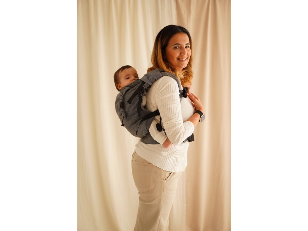 Je možné nastavit výšku zádové opěrky pomocí pásků po stranách. Rovněž je možné upravit šířku sedu a to pomocí speciálního systému patentků. Tímto jednoduchým způsobem můžete upravovat nosítko na míru aktuálním potřebám dítěte.