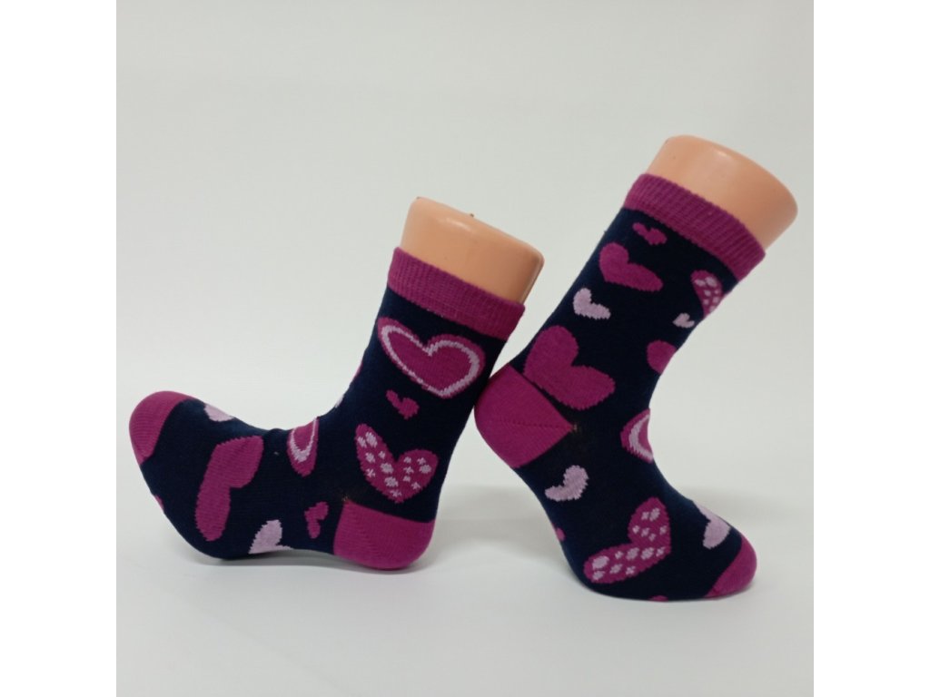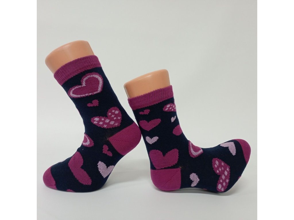 Dětské bavlněné ponožky SRDÍČKA - tmavě modrá, Trepon