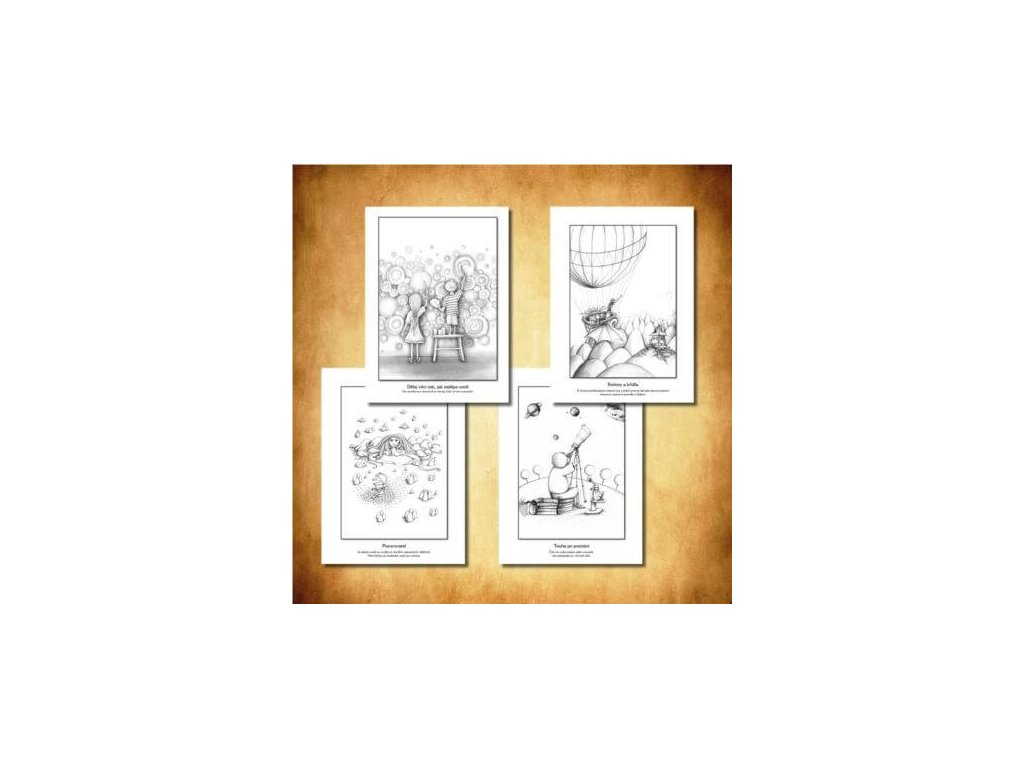 Autorské inspirační vymalovánky obsahují 16 obrázků formátu A4 na kvalitním akvarelovém papíře.