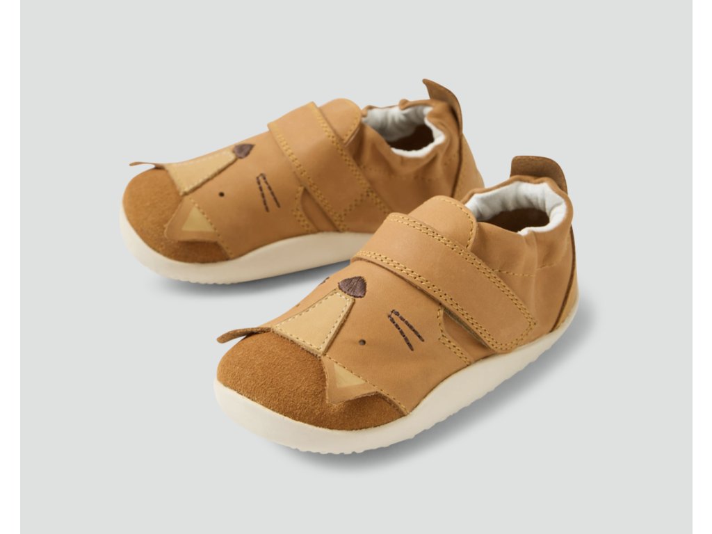Roztomilé zvířátkové kožené capáčky Bobux s gumovou podešví z řady XPLORER pro začínající chodce.
