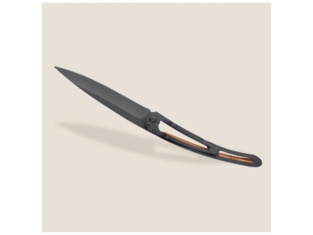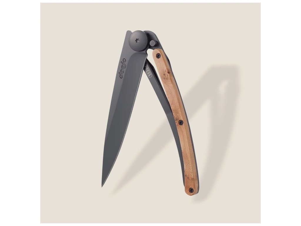 Deejo Black 37 g s rukojetí z kořene jalovce kombinuje minimalistický design, nízkou hmotnost a kvalitní materiály. Díky čepeli z nerezové oceli Z40C13 a spolehlivé liner-lock pojistce je nůž vhodný pro běžné úkoly a každodenní použití.