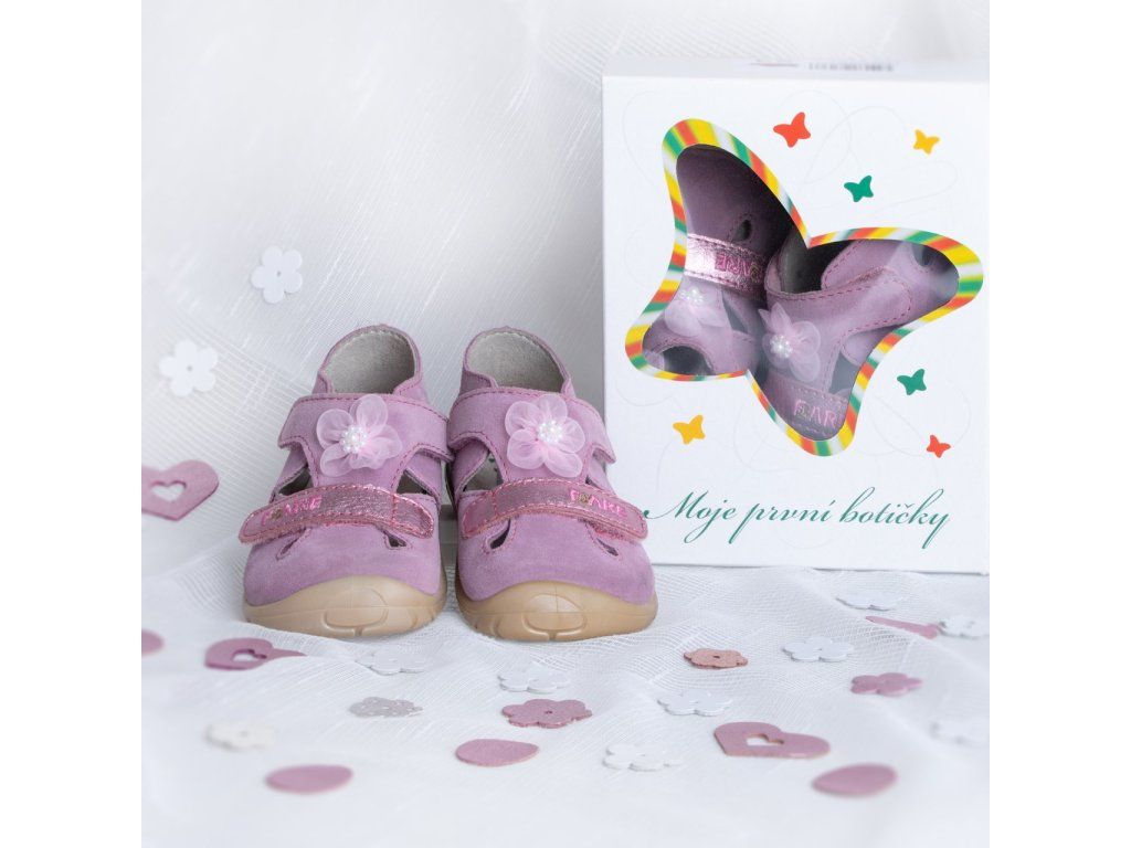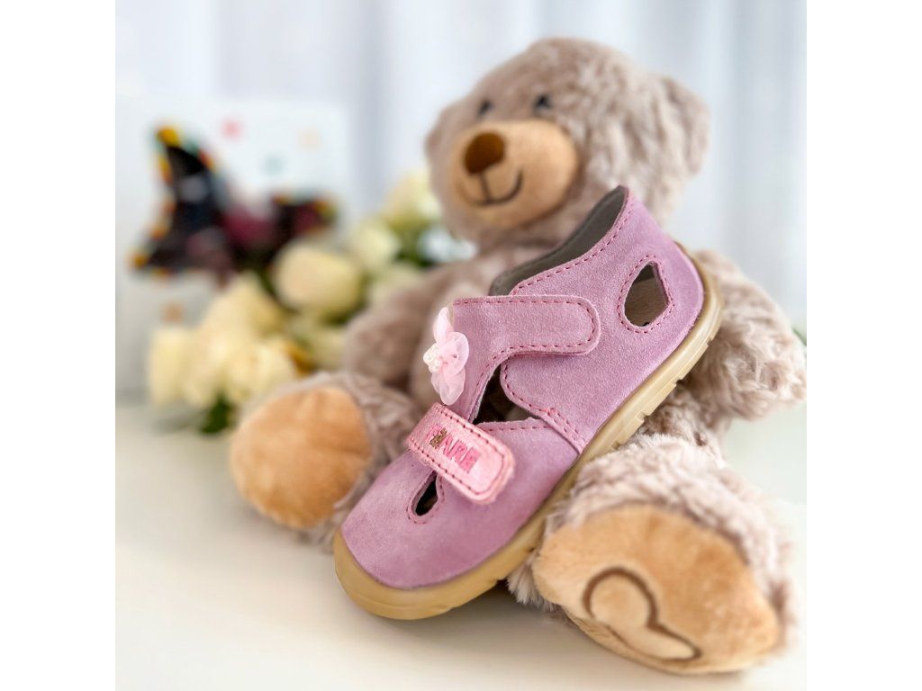 Dětské barefoot sandálky - růžová s kytičkou (5061351), Fare bare