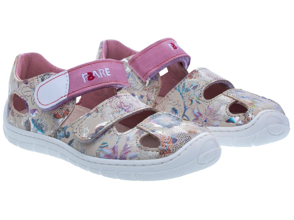 FARE BARE Dětské barefoot sandály TRIPOLIS - béžové s potiskem
