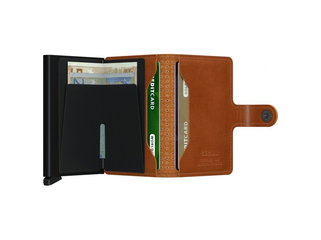 Miniwallet ztělesňuje moderní pojetí klasické peněženky. Díky tenkému provedení skvěle padne do každé kapsy. Nabízí však dostatek prostoru pro platební karty, vizitky i hotovost. Patentovaný mechanismus umožňuje vysunout karty jedním jednoduchým pohybem. Hliníková výztuha chrání karty před ohýbáním, lámáním i nežádoucí bezdrátovou komunikací.