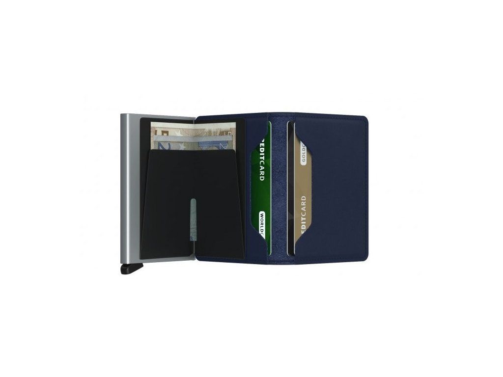 Slimwallet ztělesňuje moderní pojetí klasické peněženky. Díky tenkému provedení skvěle padne do každé kapsy. Nabízí však dostatek prostoru pro platební karty, vizitky i hotovost. Patentovaný mechanismus umožňuje vysunout karty jedním jednoduchým pohybem. Hliníková výztuha chrání karty před ohýbáním, lámáním i nežádoucí bezdrátovou komunikací.