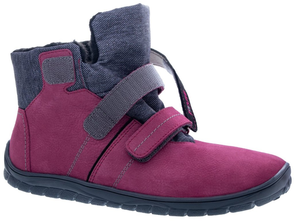 Zimní barefoot boty s membránou - vínová (B5646251), FARE BARE
